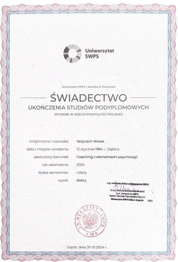 Jestem także absolwentem Uniwersytetu Jagiellońskiego, Uniwersytetu Ekonomicznego w Krakowie oraz Uniwersytetu SWPS, gdzie ukończyłem studia podyplomowe na kierunku Coaching z elementami psychologii.